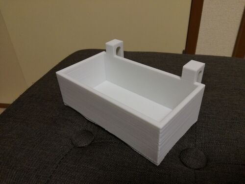 プチ量産決定 過去最高に実用的なものができました。メッシュパネルに引っ掛けて使います♪ 結構大きめに作ったのでリセッシュも入ります。 写真をよく見るとわかるのですが、底面が反って形状が崩れています。試しにノズル温度を180度から200度に上げてみた…